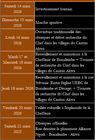 Page internet dédiée aux obsèques officielles de Sa Majesté DIKONGUE EKOBO Jean Paul